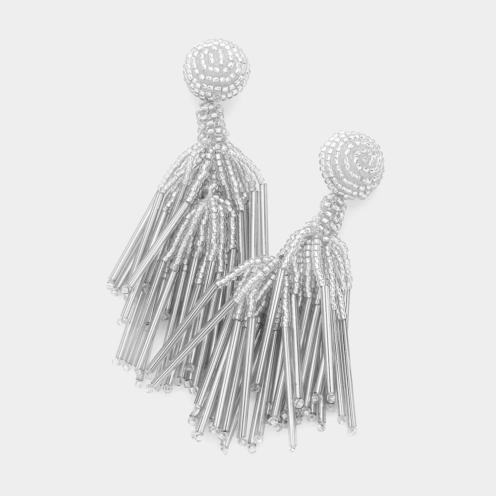 Embossed Cross Metal Bar Faux Leather Tassel Charm Stretch Bracelet
