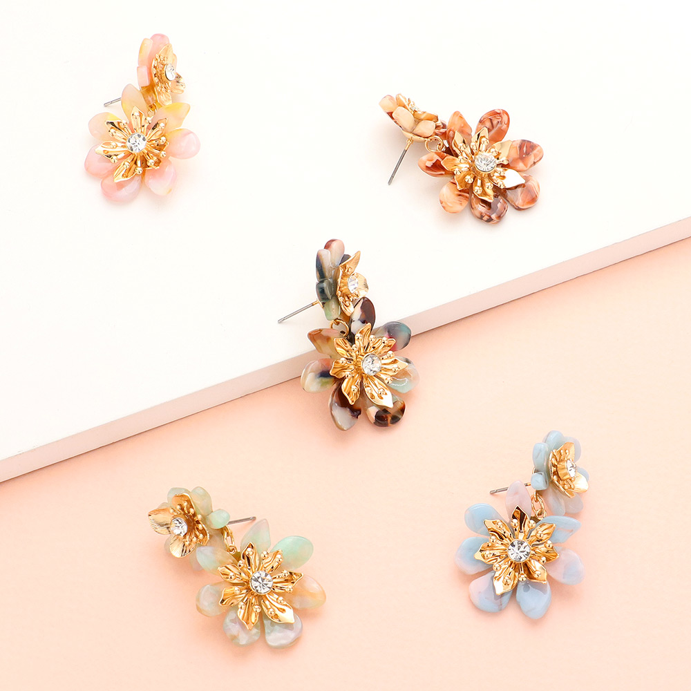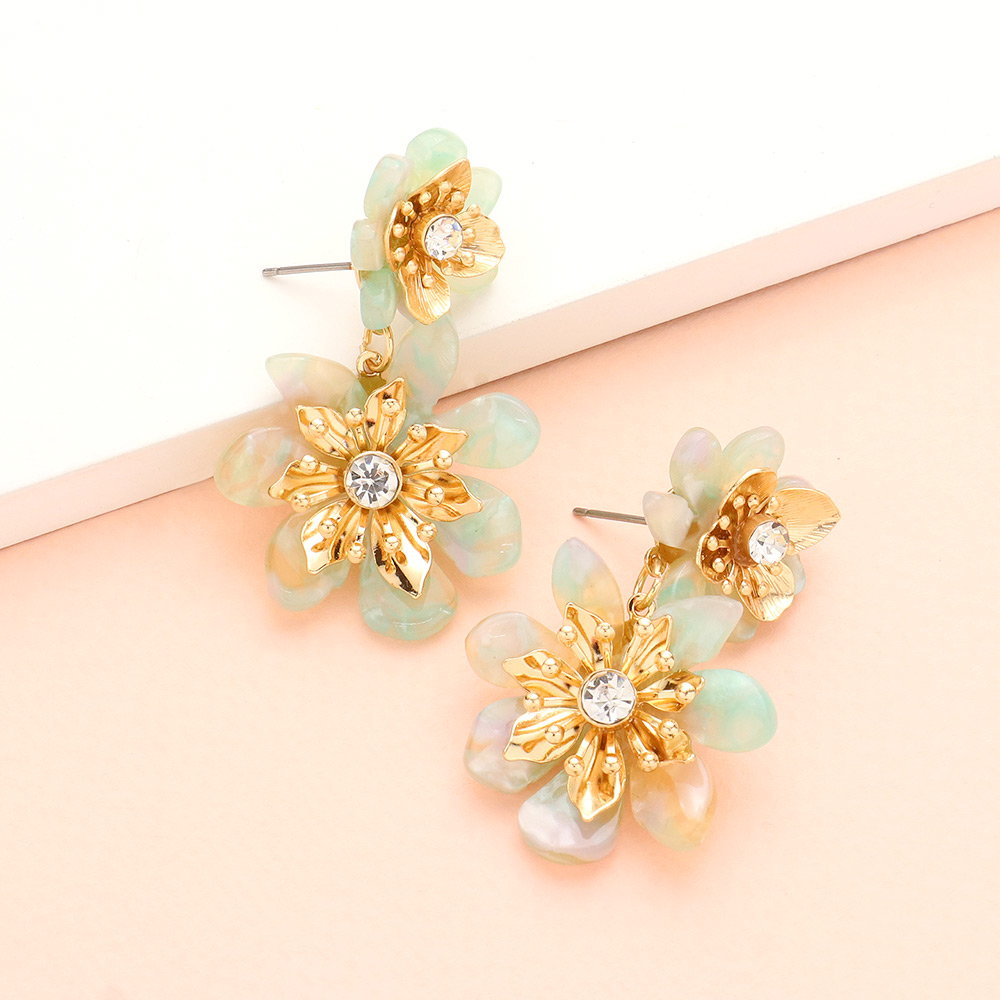 Celluloid Acetate Double Flower Link Dangle Earrings