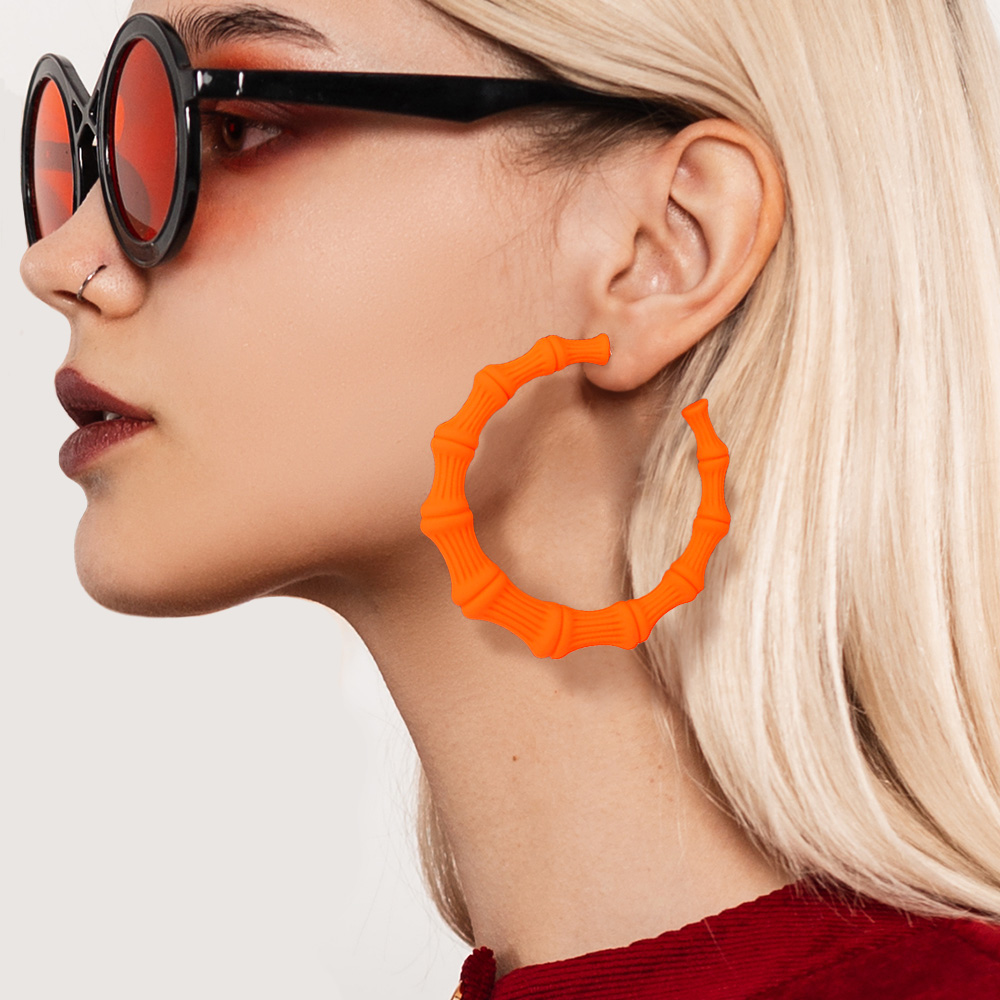 Stainless Steel 1.2 Inch Metal Bamboo Hoop Pin Catch Earrings