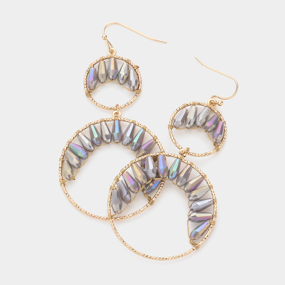 Faceted Teardrop Bead Wrapped Double Open Metal Circle Link Dangle Earrings