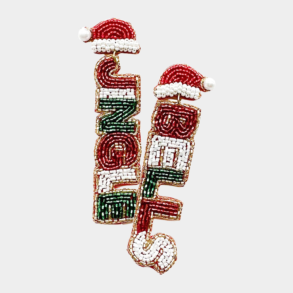 Felt Back Beaded Santa Hat Jingle Bells Message Link Dangle Earrings