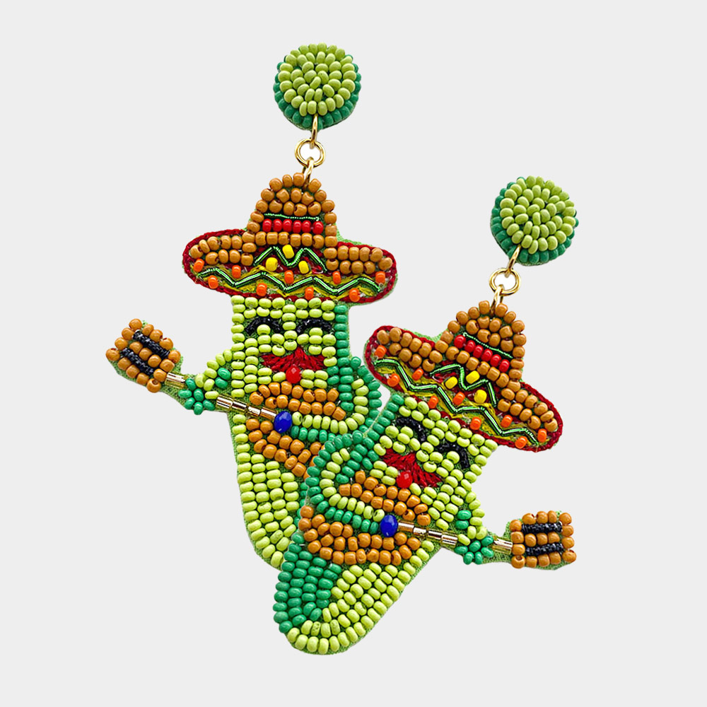 let's Fiesta! Message Felt Back Sequin Beaded Cactus Dangle Earrings