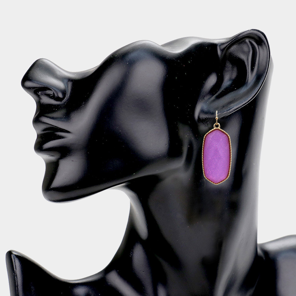 Felt Back Stone Beaded Boho Fringe Dangle Earrings