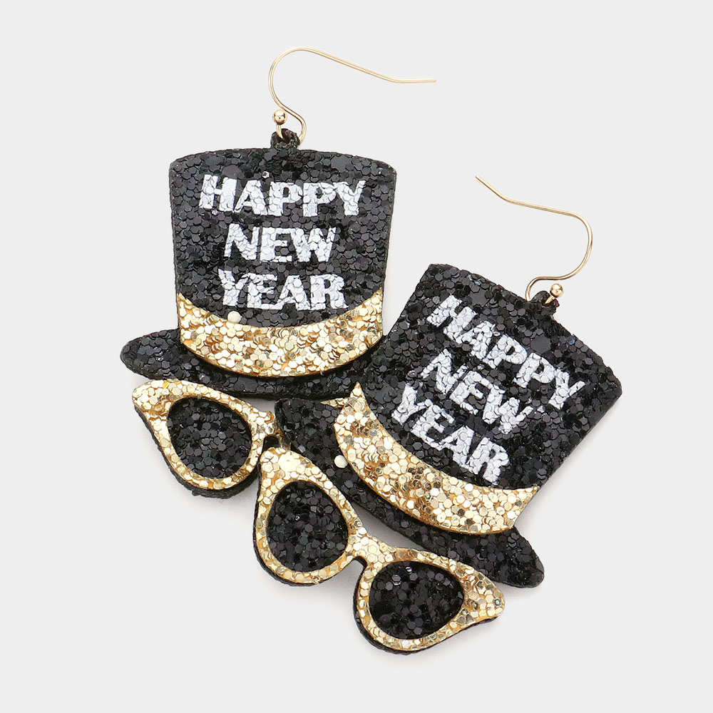 Happy New Year Message Glittered Hat Sunglasses Dangle Earrings