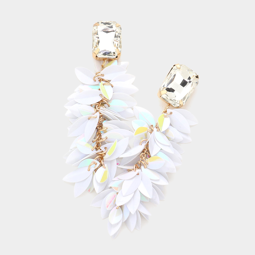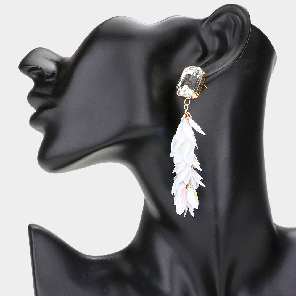 Christmas Cactus Message Stone Trimmed Metal Teardrop Dangle Earrings