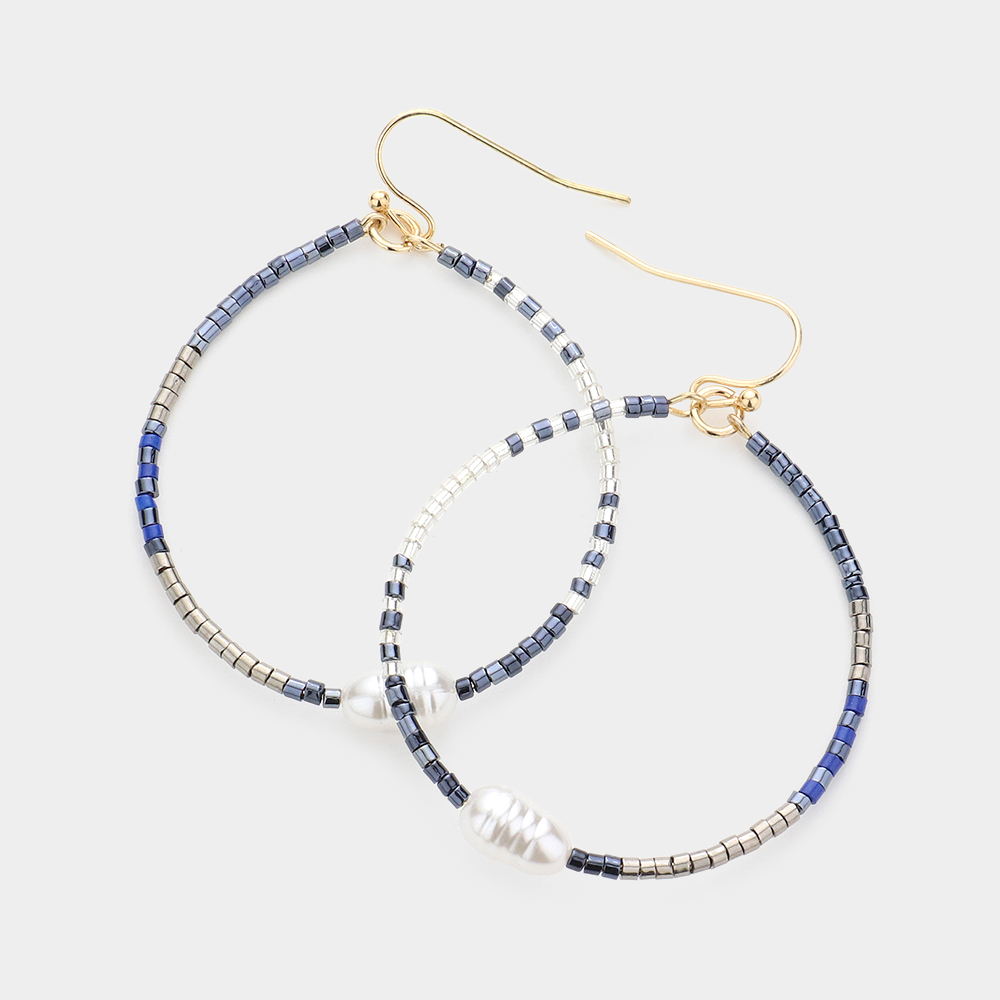Pearl Accented Beaded Open Circle Dangle Earrings