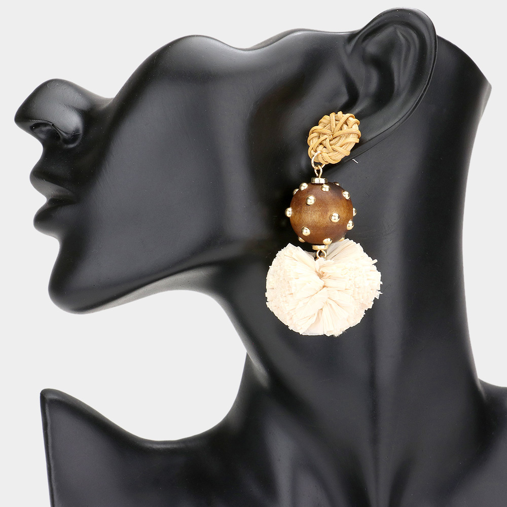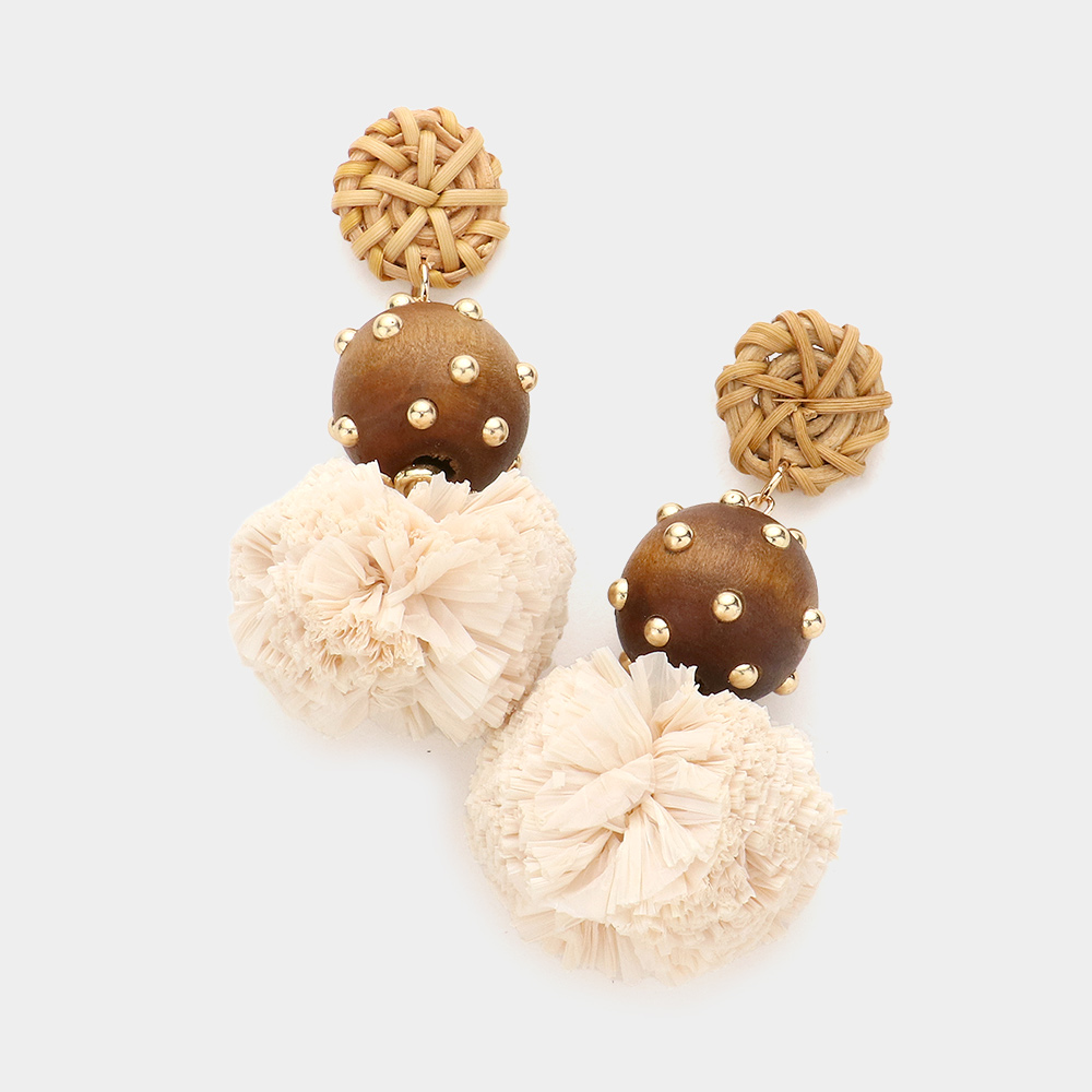 Metal Pin Catch Hoop Wood Open Circle Link Dangle Earrings