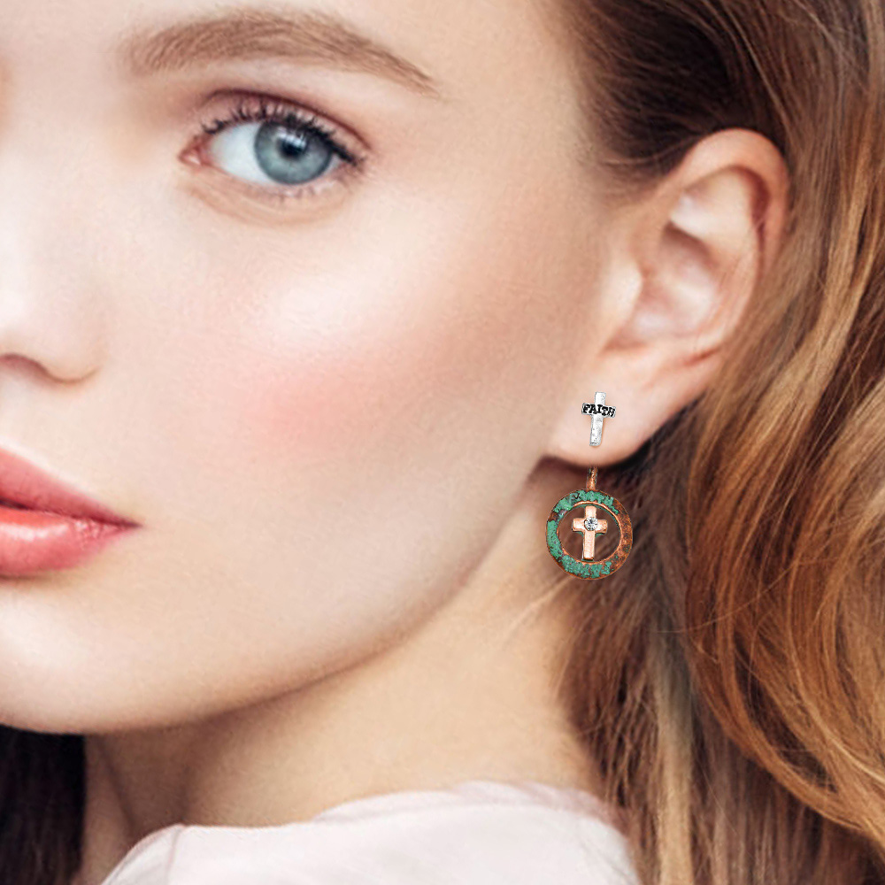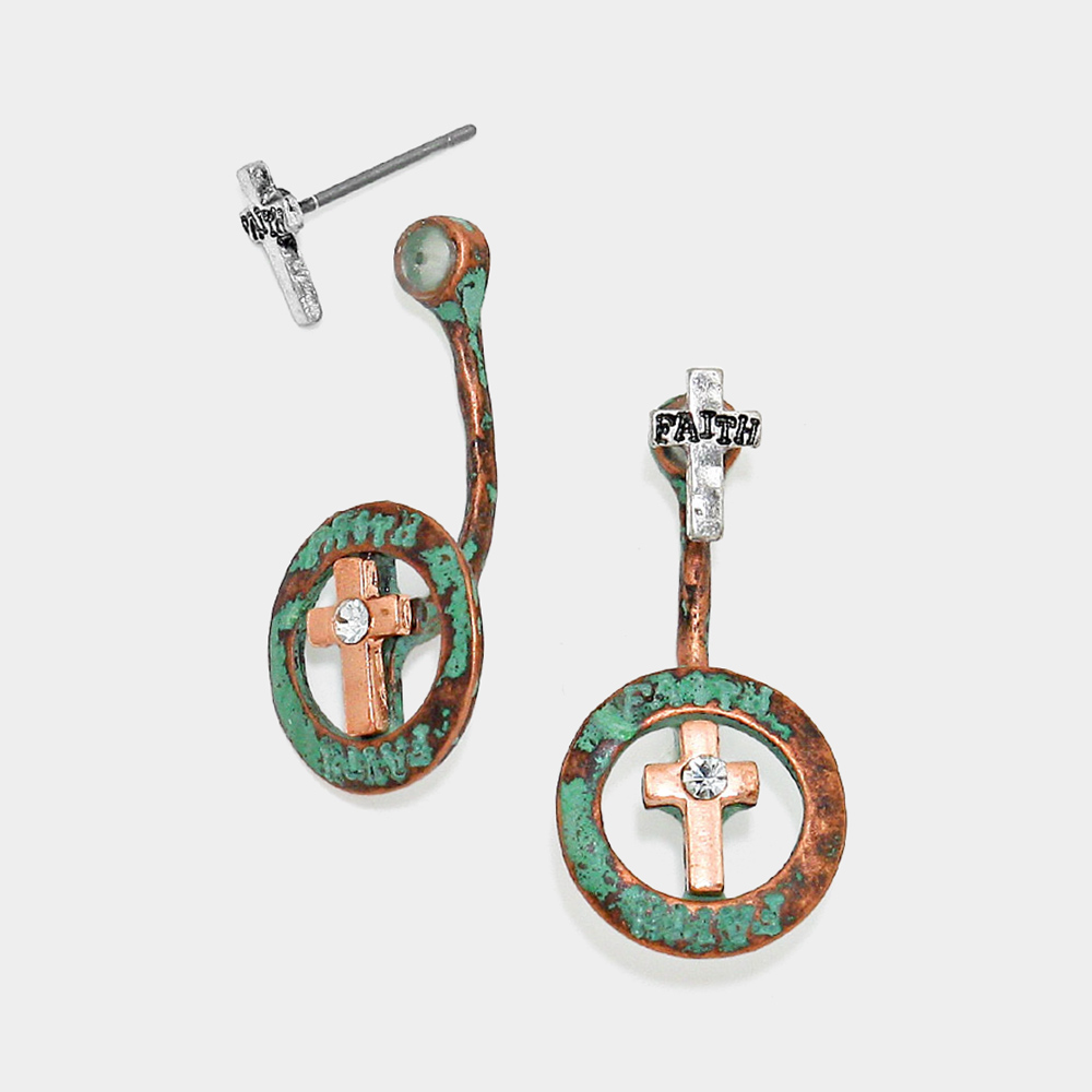 Faith Message Cross Ear Jacket Earrings