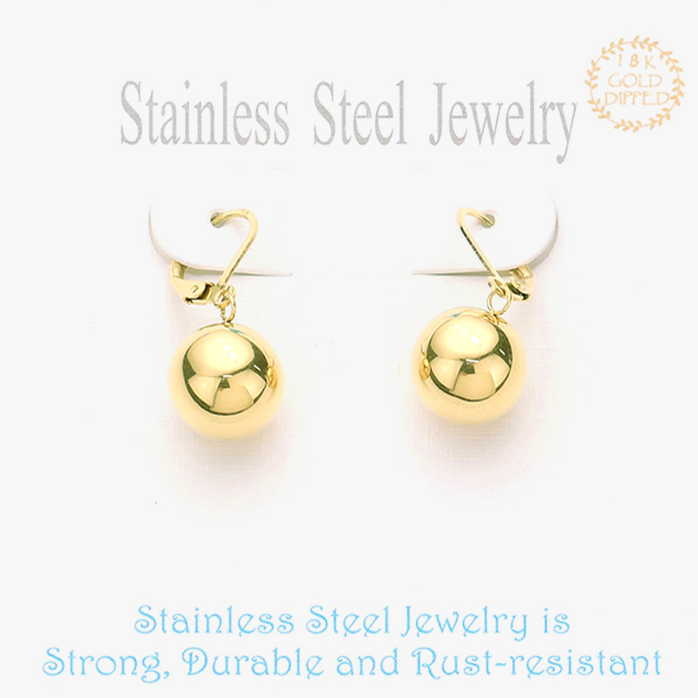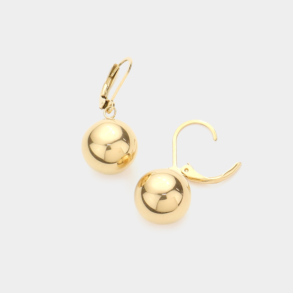 18K Gold Dipped Stainless Steel Metal Ball Dangle Lever Back Earrings