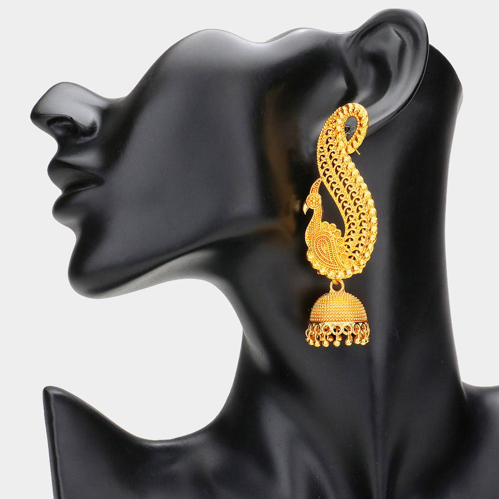 Jhumka Metal Peacock Link Statement Dangle Earrings