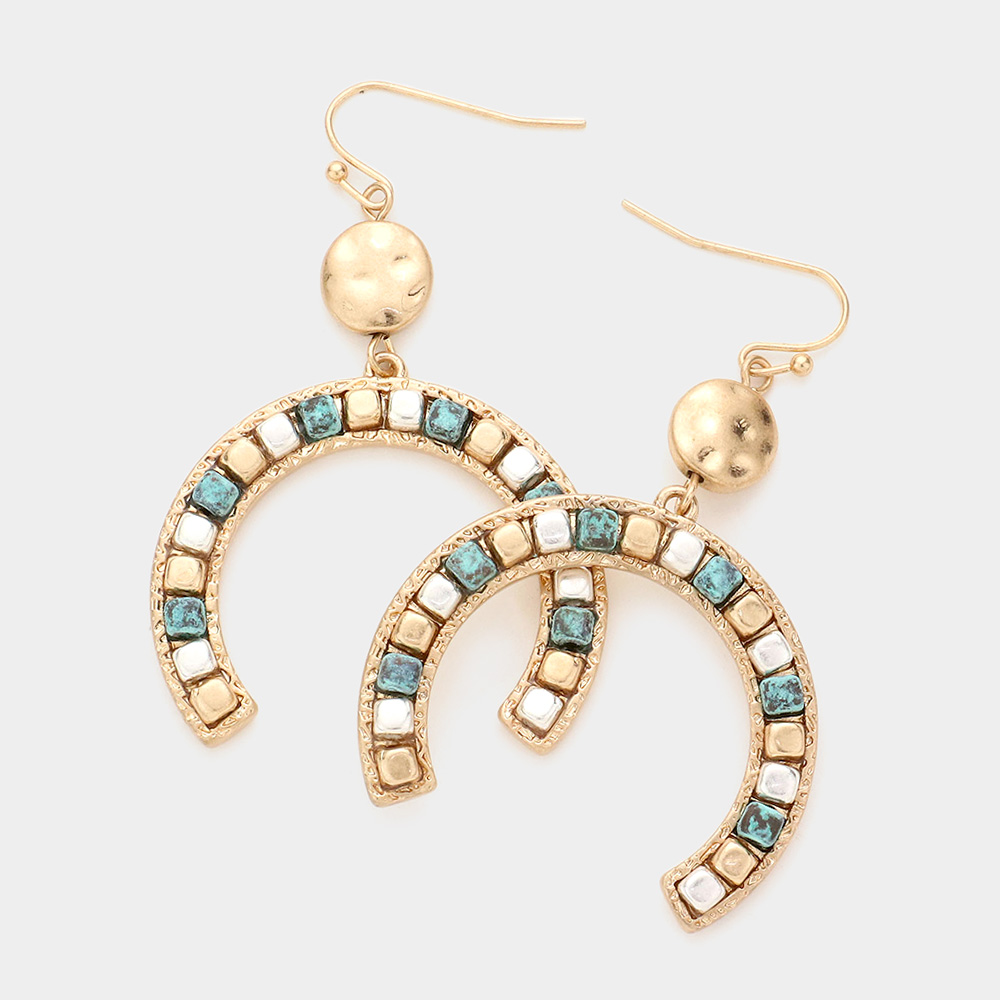 Rhinestone Metal Bar Celluloid Acetate Square Earrings