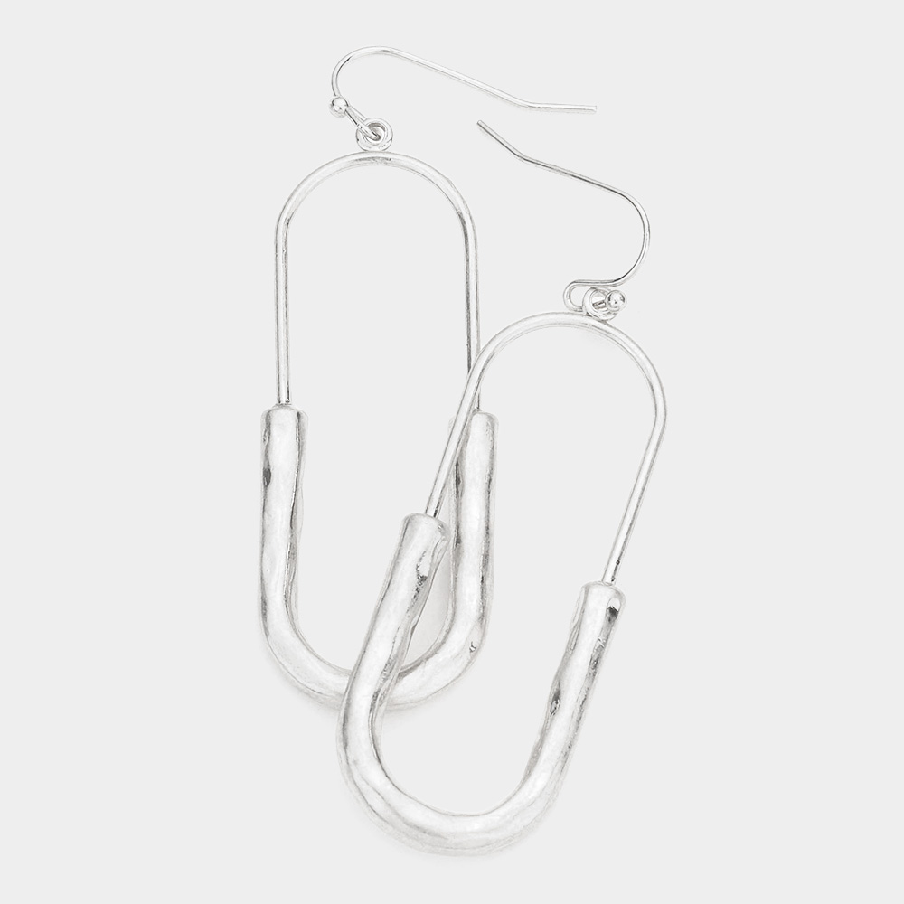 Open Oval Worn Metal Dangle Earrings