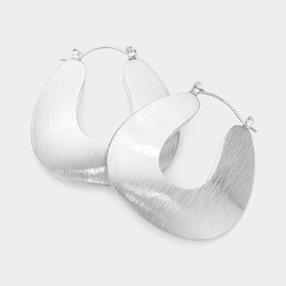 14K White Gold Dipped Textured Metal Half Hoop Earrings