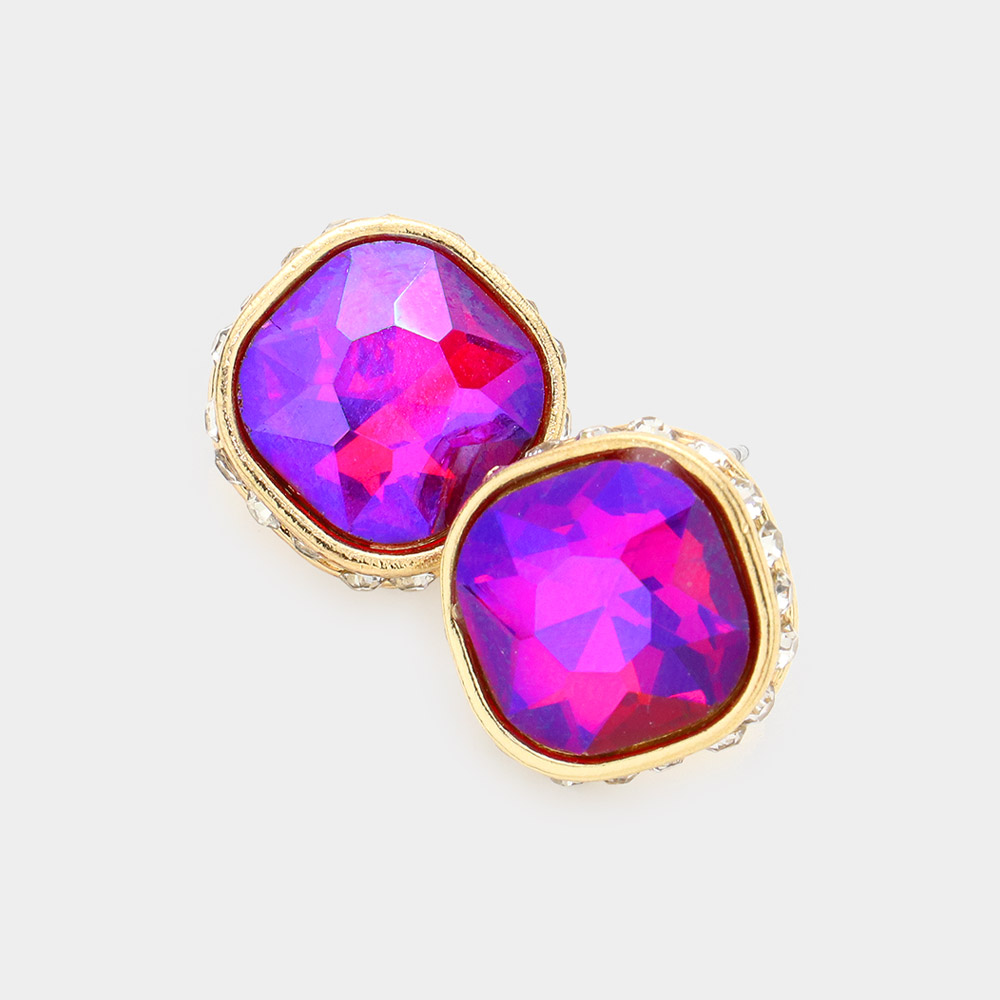 Rhinestone Trimmed Square Stone Evening Stud Earrings