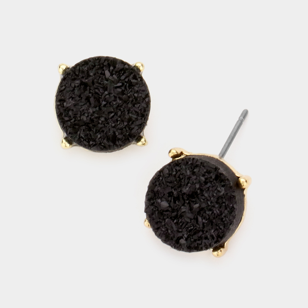 Round Druzy Stud Earrings