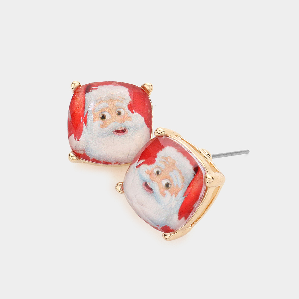 Santa Claus Cushion Square Stud Earrings