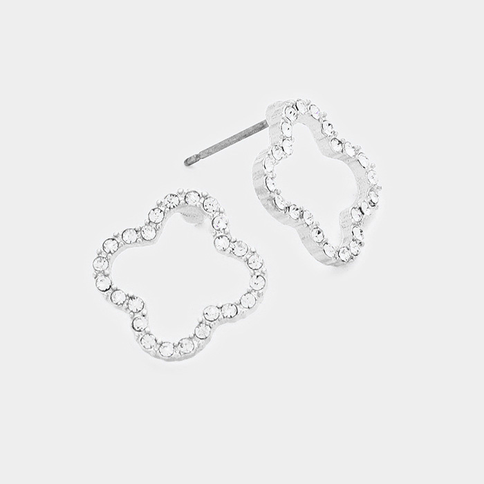 Stone Trimmed Quatrefoil Clover Stud Earrings
