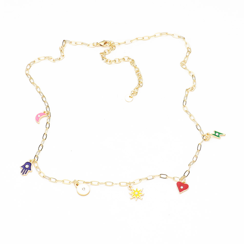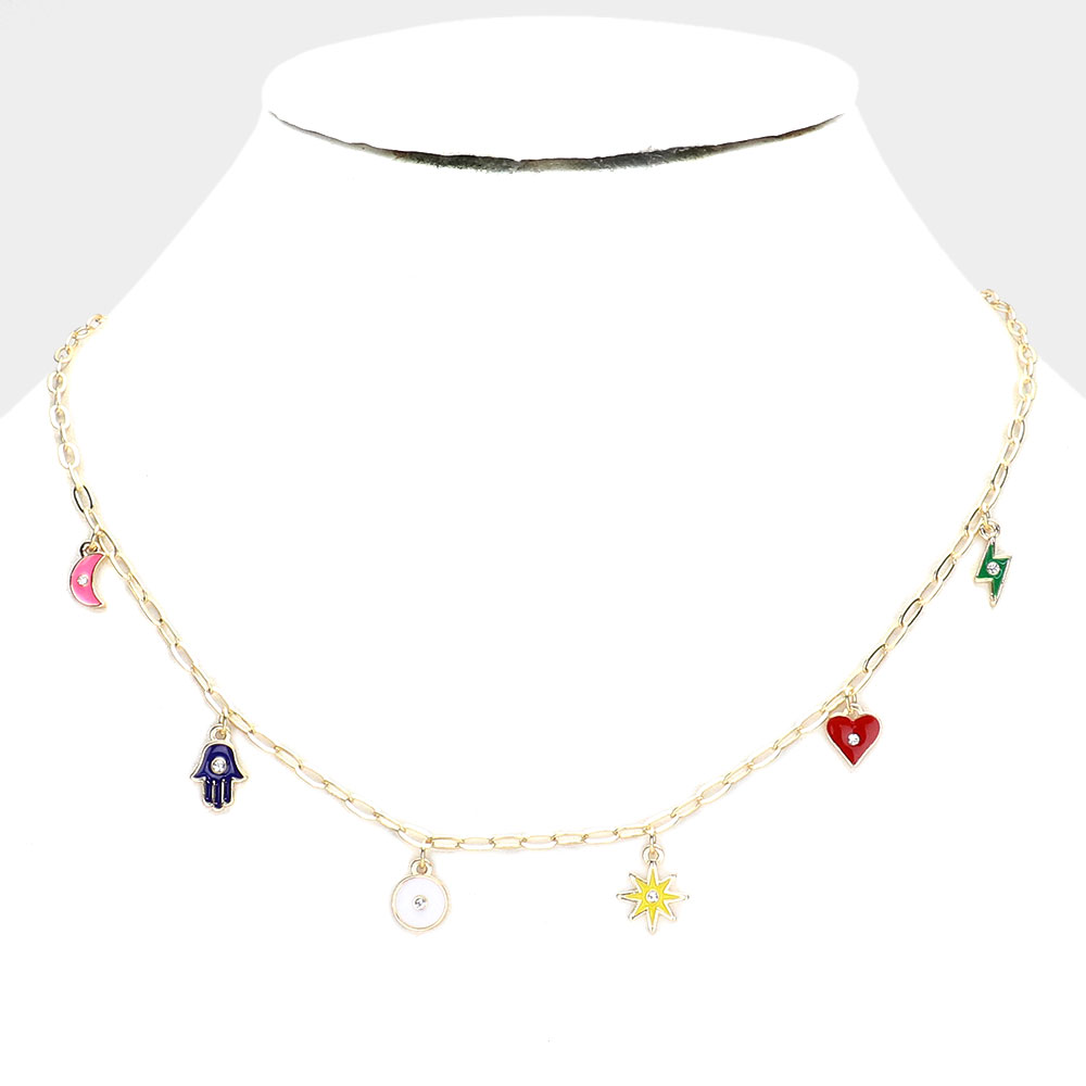 Crescent Moon Hamsa Hand Evil Eye North Star Heart Lightning Pendant Station Necklace