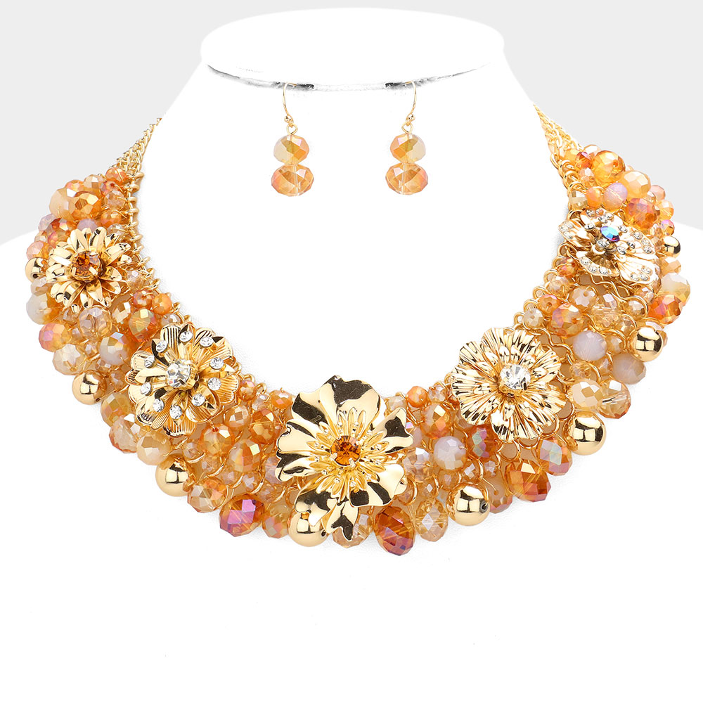 Mother of Pearl Quatrefoil Ceramic Flower Charm Station Braid Chain Wrap Necklace