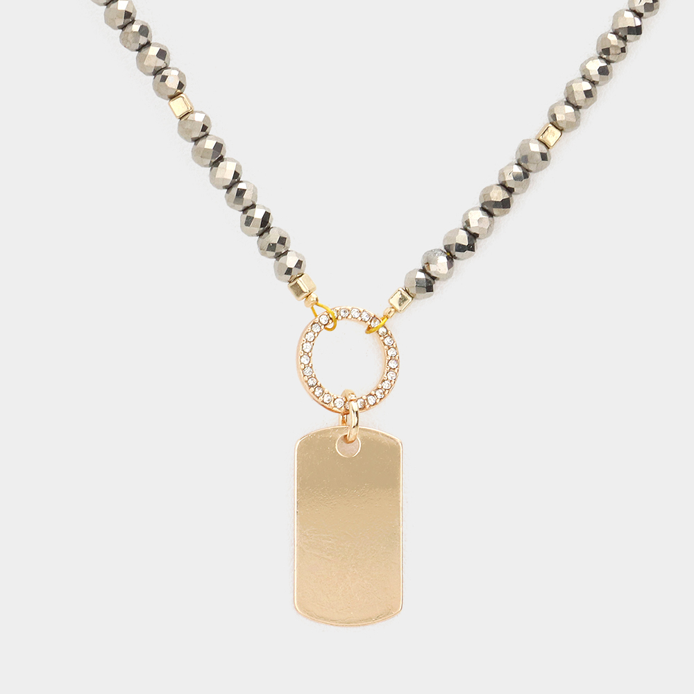 Metal Rectangle Pendant Faceted Beaded Necklace