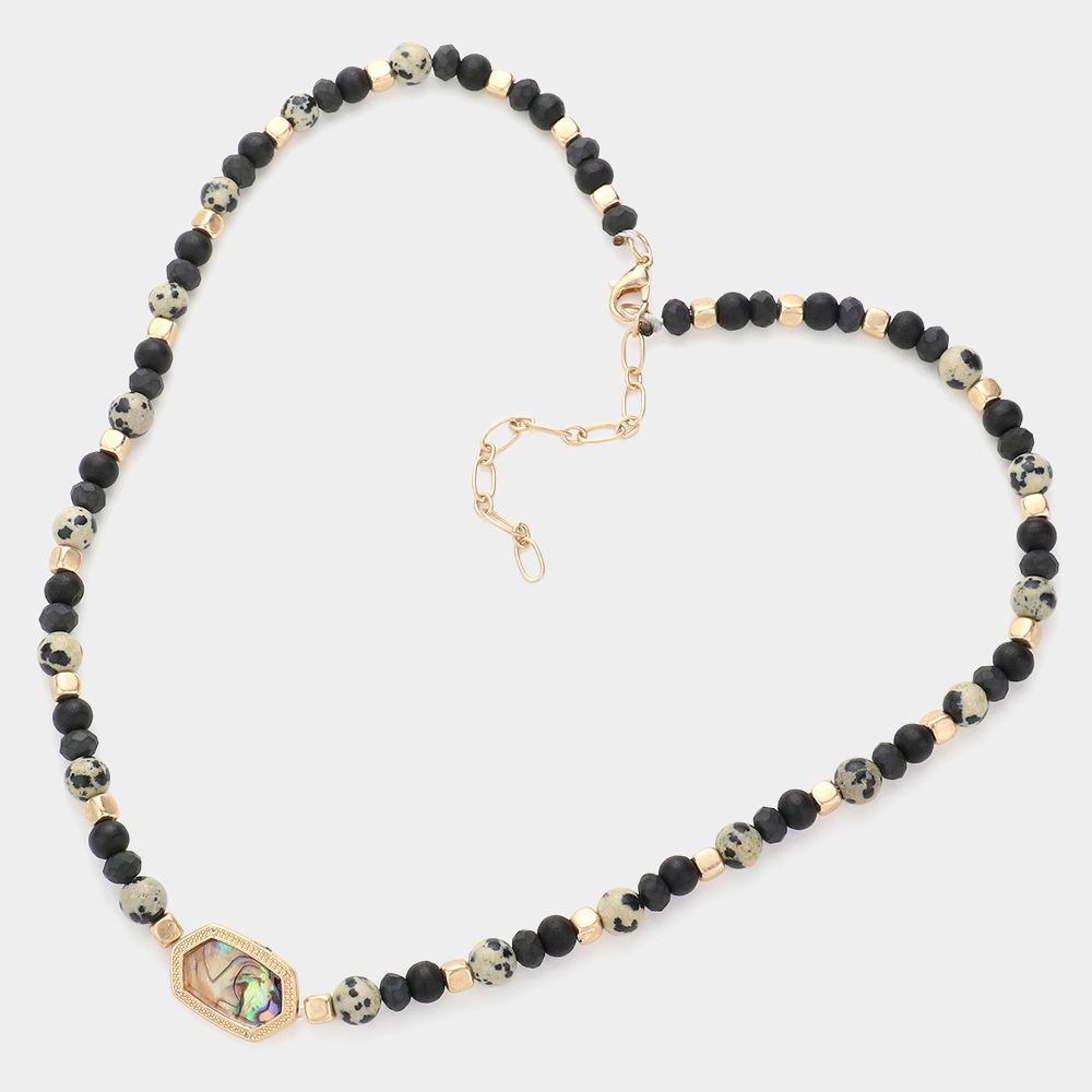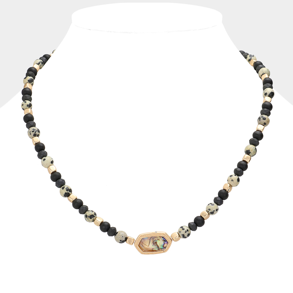 Chunky Marbled Resin Pebble Beaded Statement Necklace