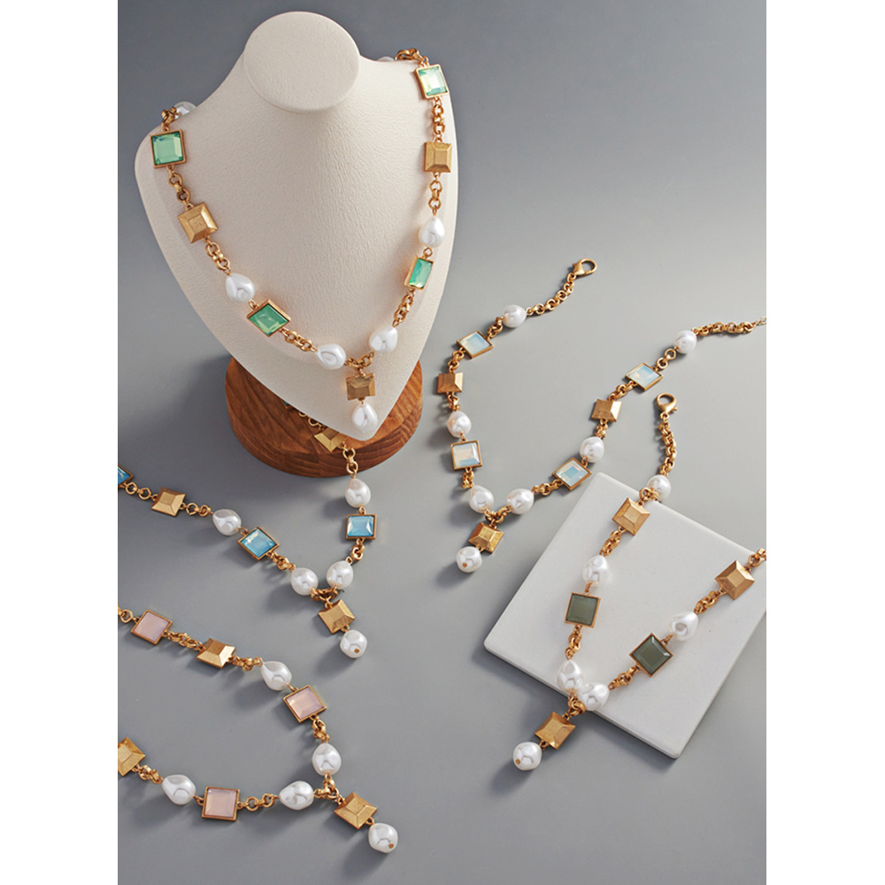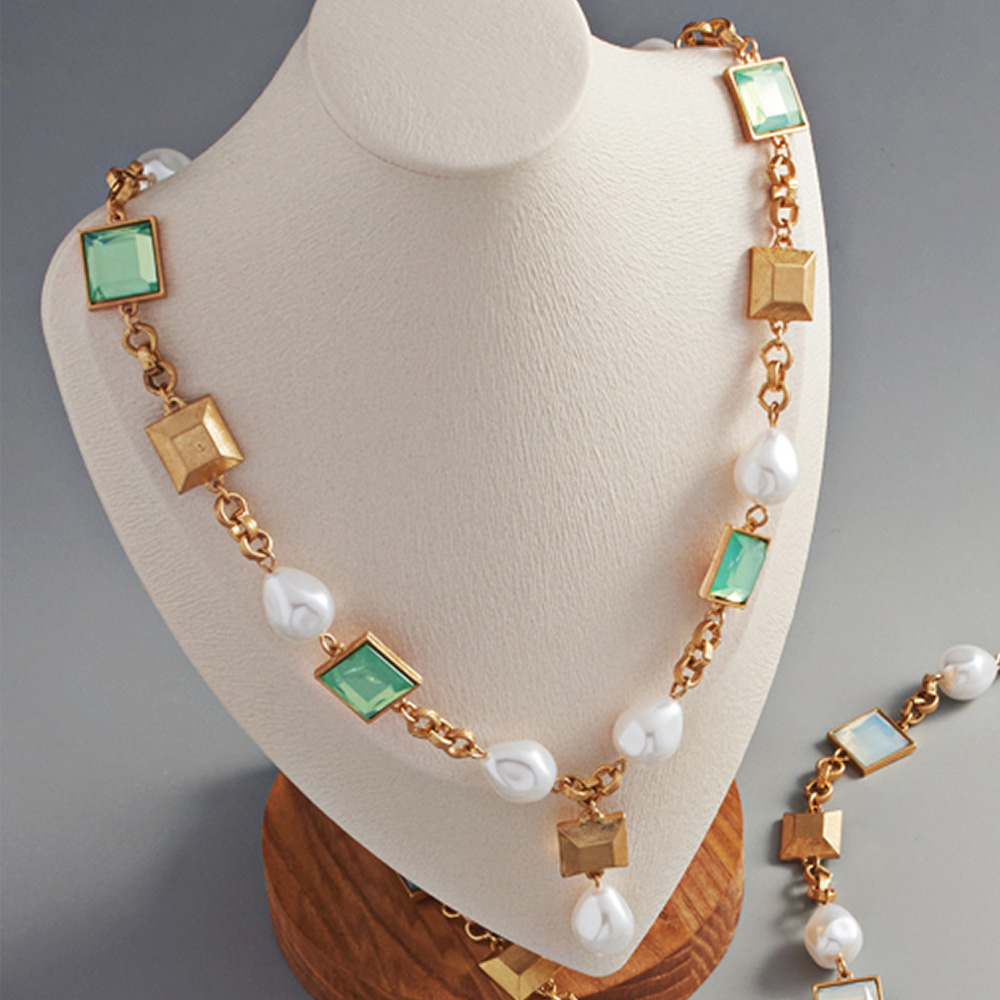3PCS Braided Chain Pearl Necklace Jewelry Set