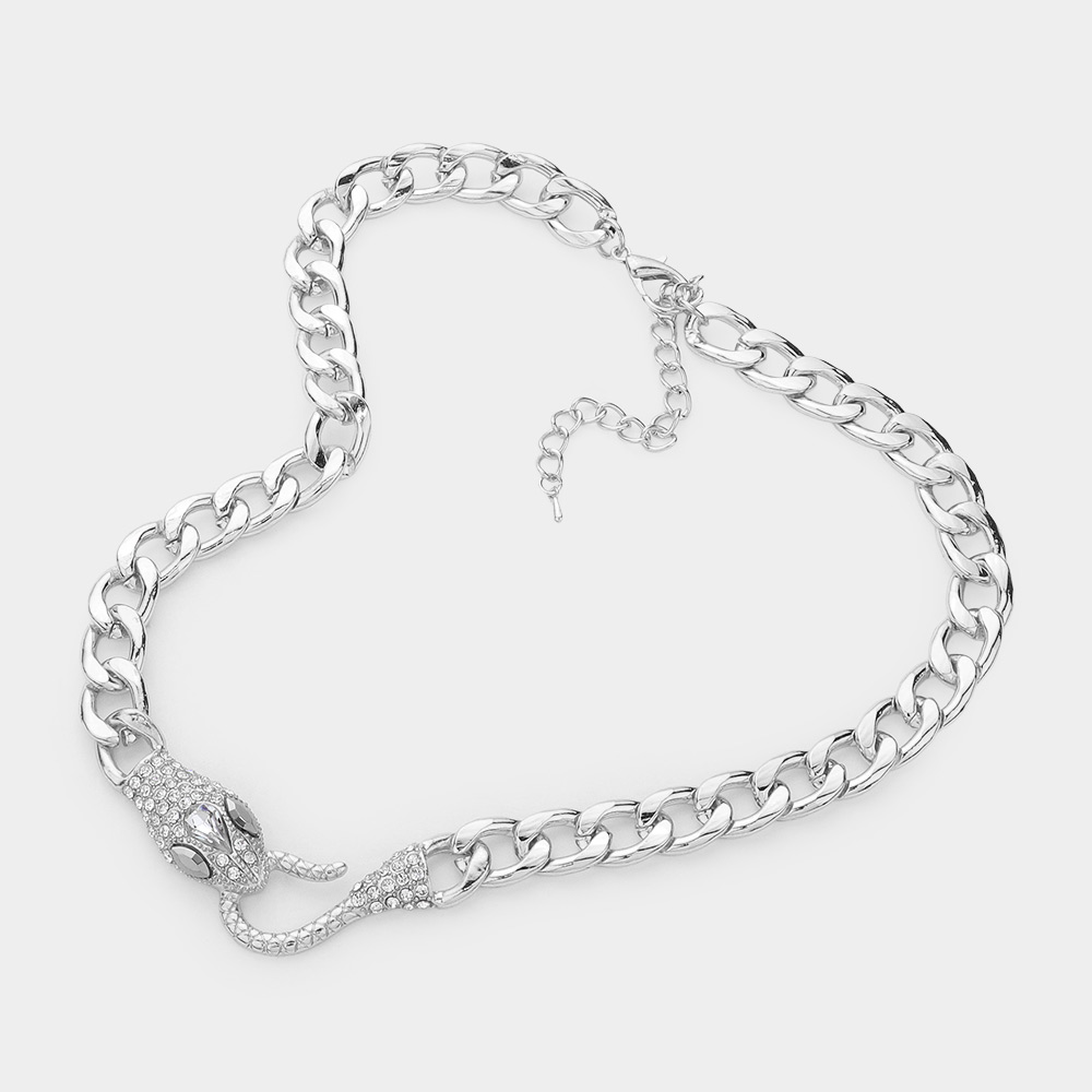 Stone Paved Double C Pointed Rhinestone Chain Waist Belt