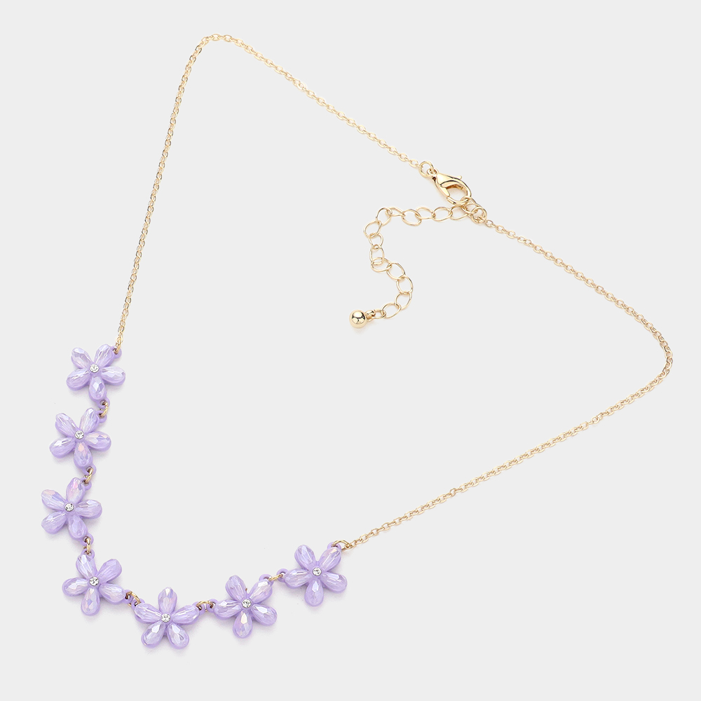 Multi Stone Flower Pearl Embellished Collar Necklace