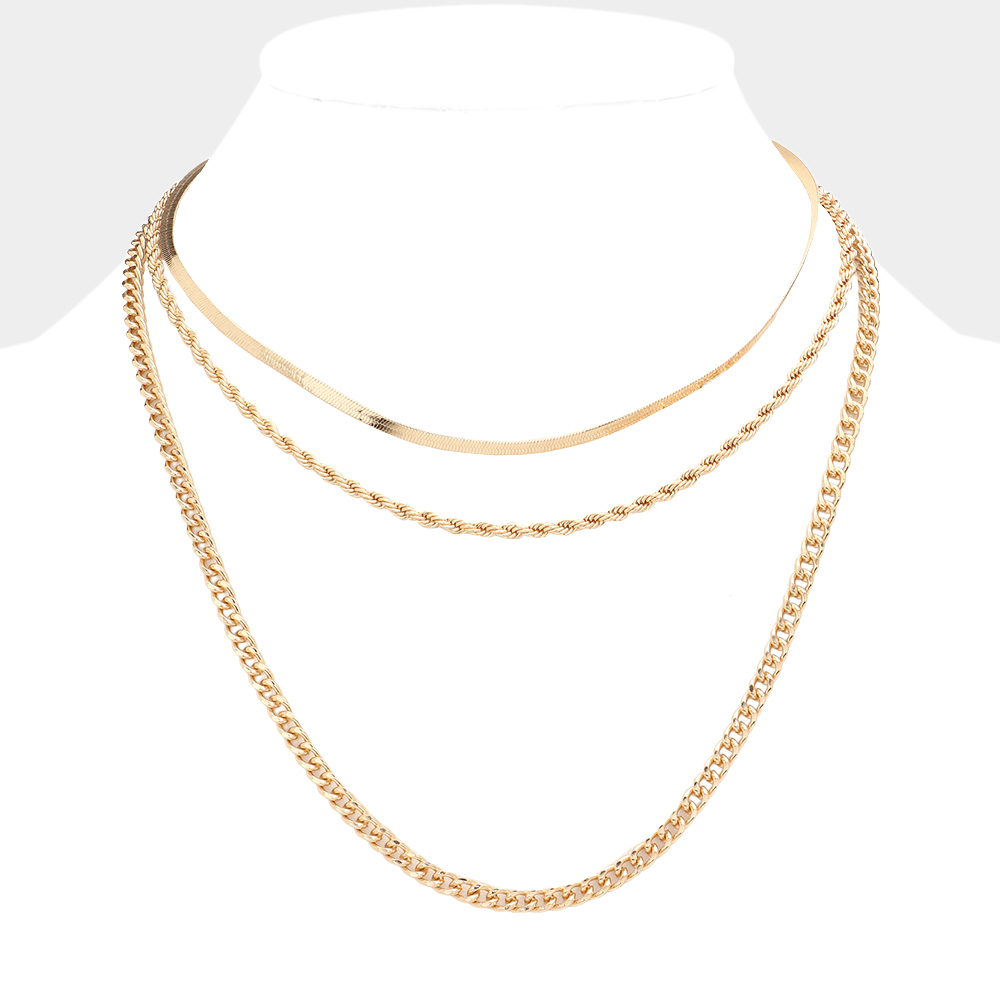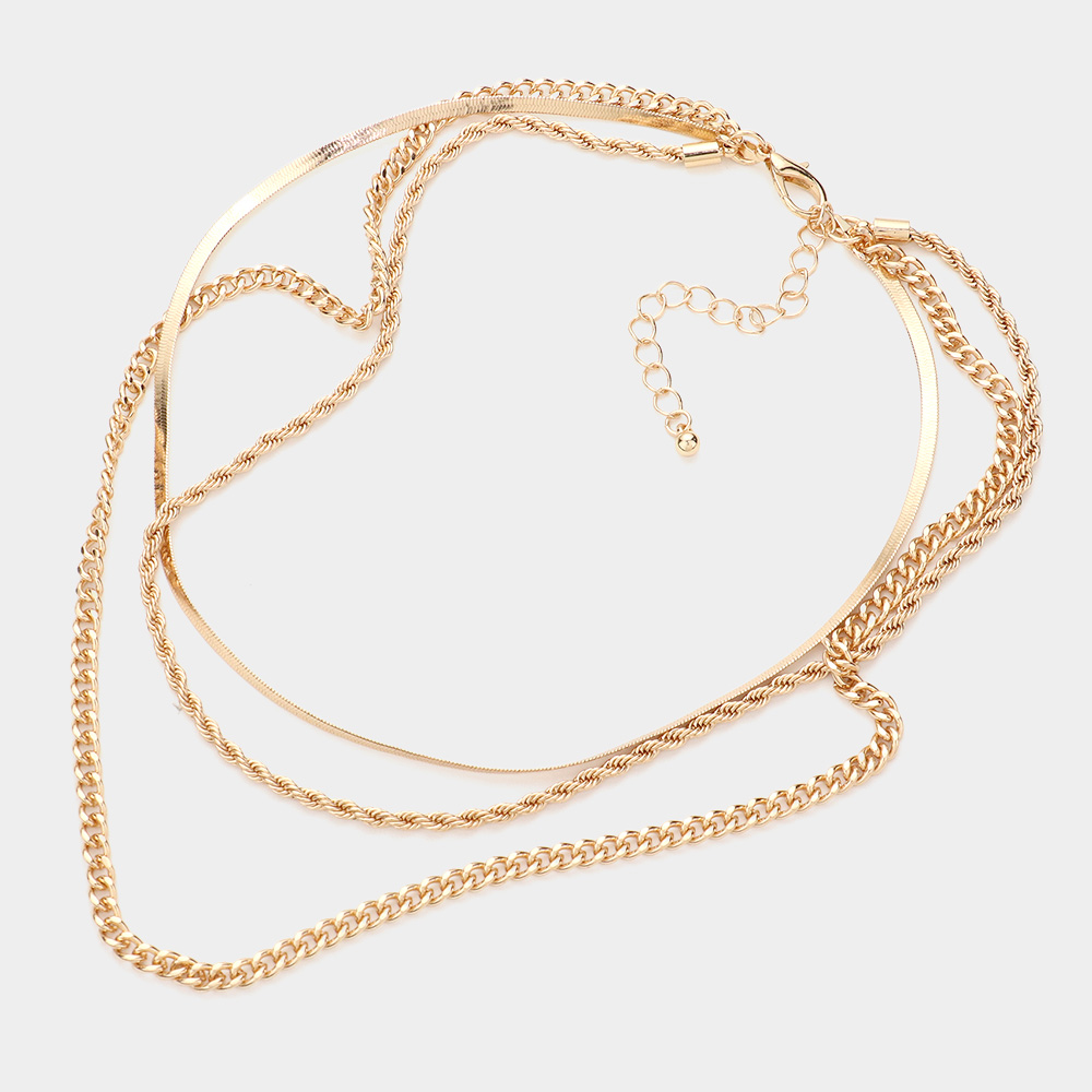 Gold Dipped Metal Chain Triple Layered Bib Necklace