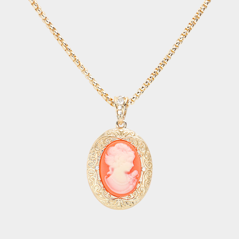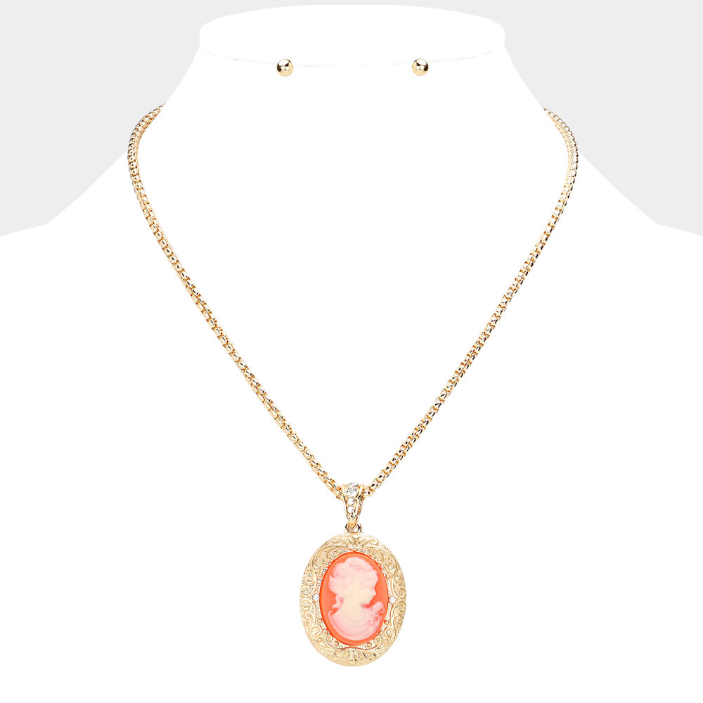 Vintage Cameo Pendant Double Waxed Cord Necklace