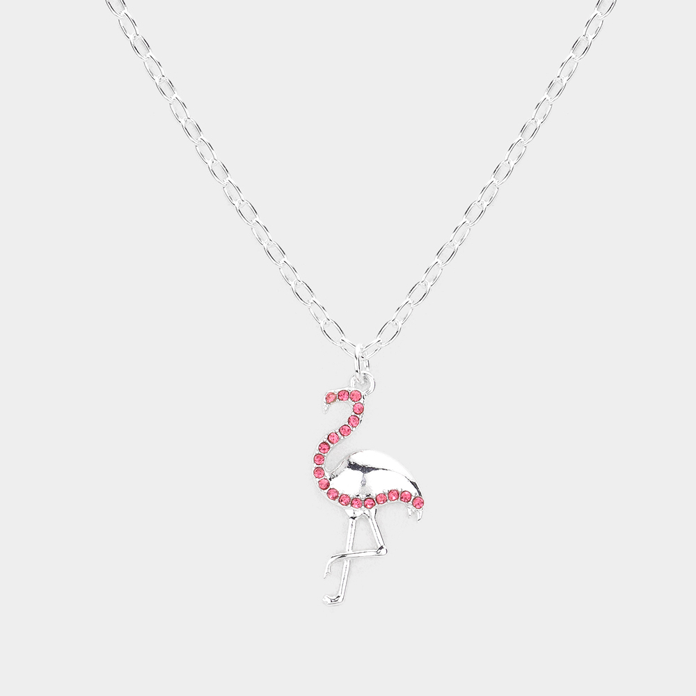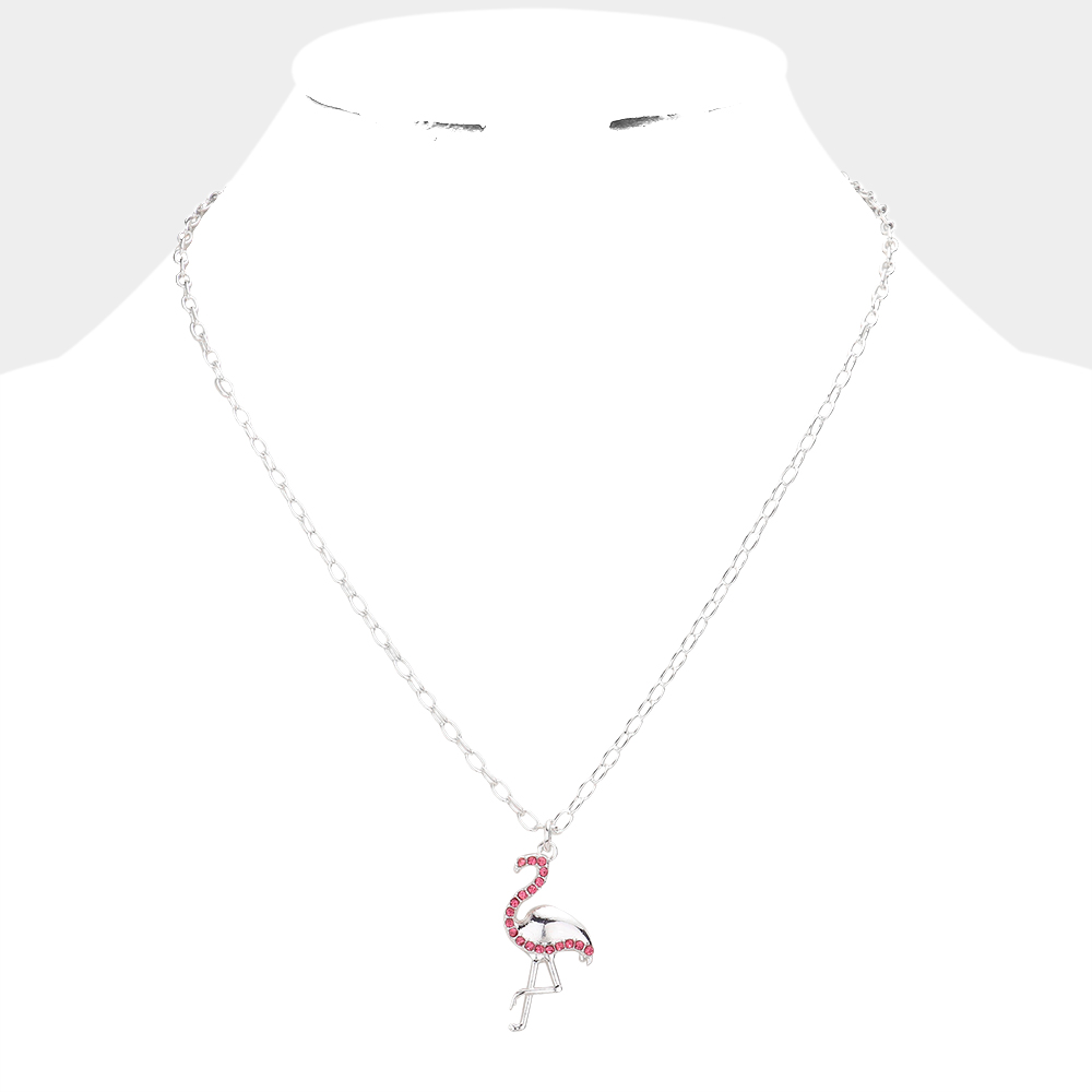 Rhinestone Embellished Metal Flamingo Pendant Necklace