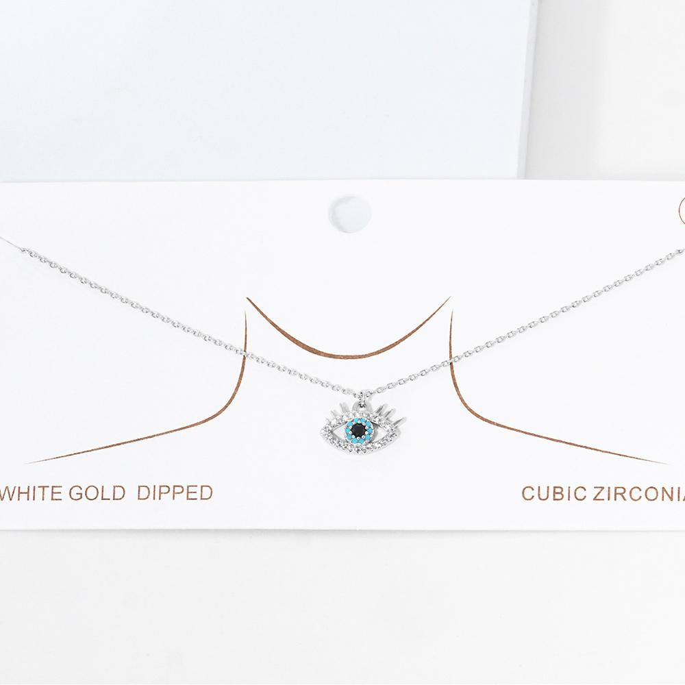 White Gold Dipped CZ Evil Eye Pendant Necklace