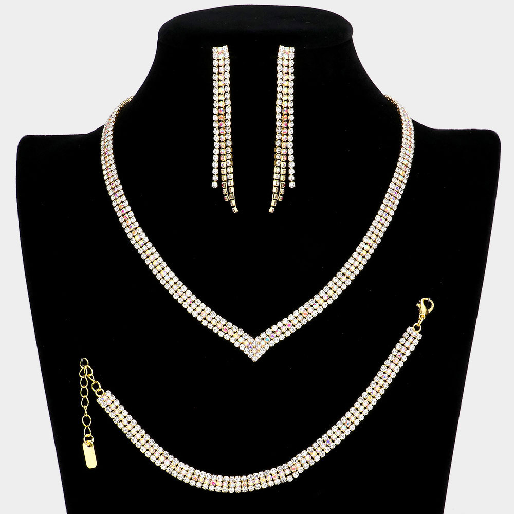3PCS - Crystal Rhinestone Pave Necklace Set