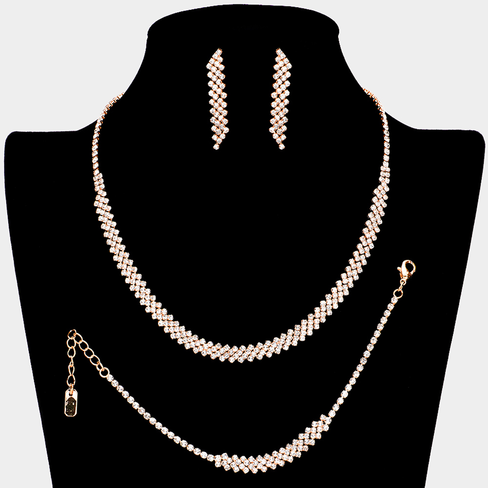 3PCS - Rhinestone Pave Necklace Jewelry Set
