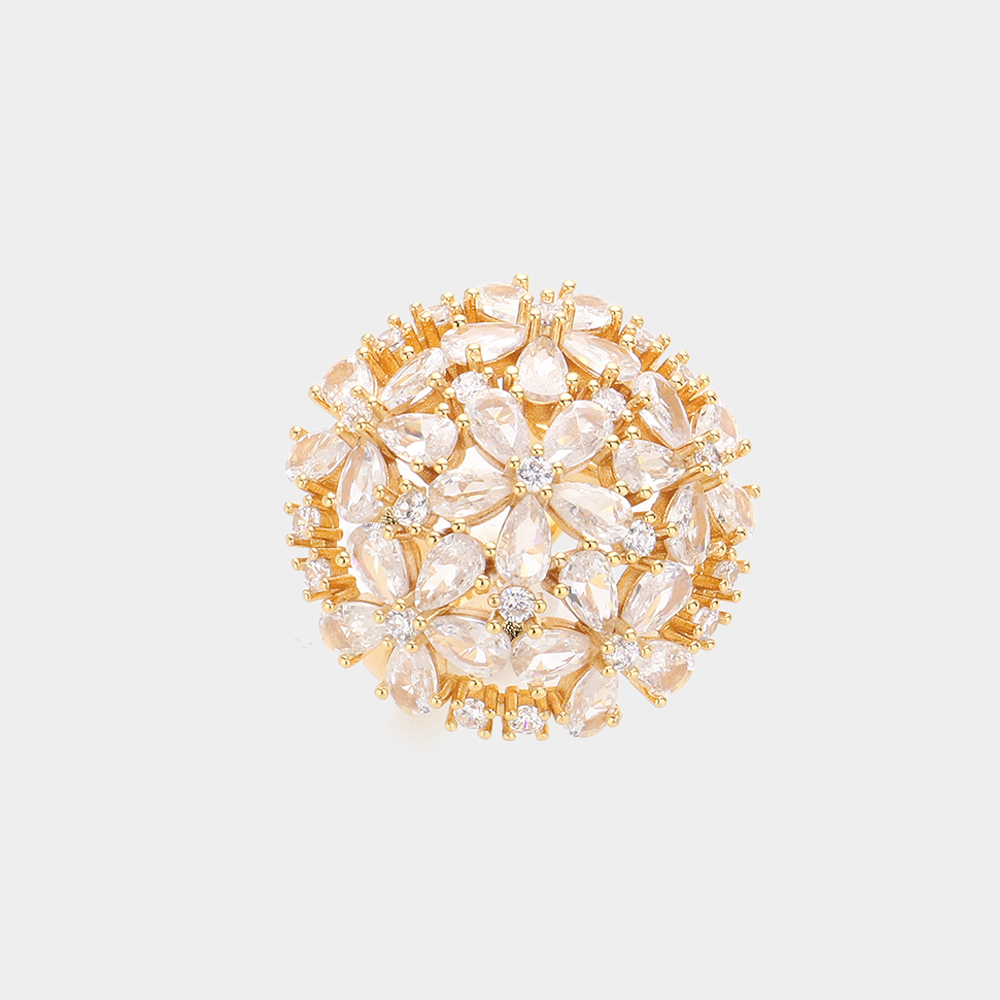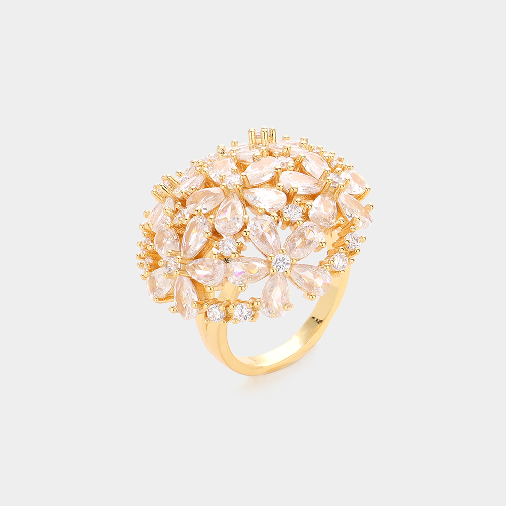 Rhinestone Embellished Flower High Heel Pointed Stretch Ring