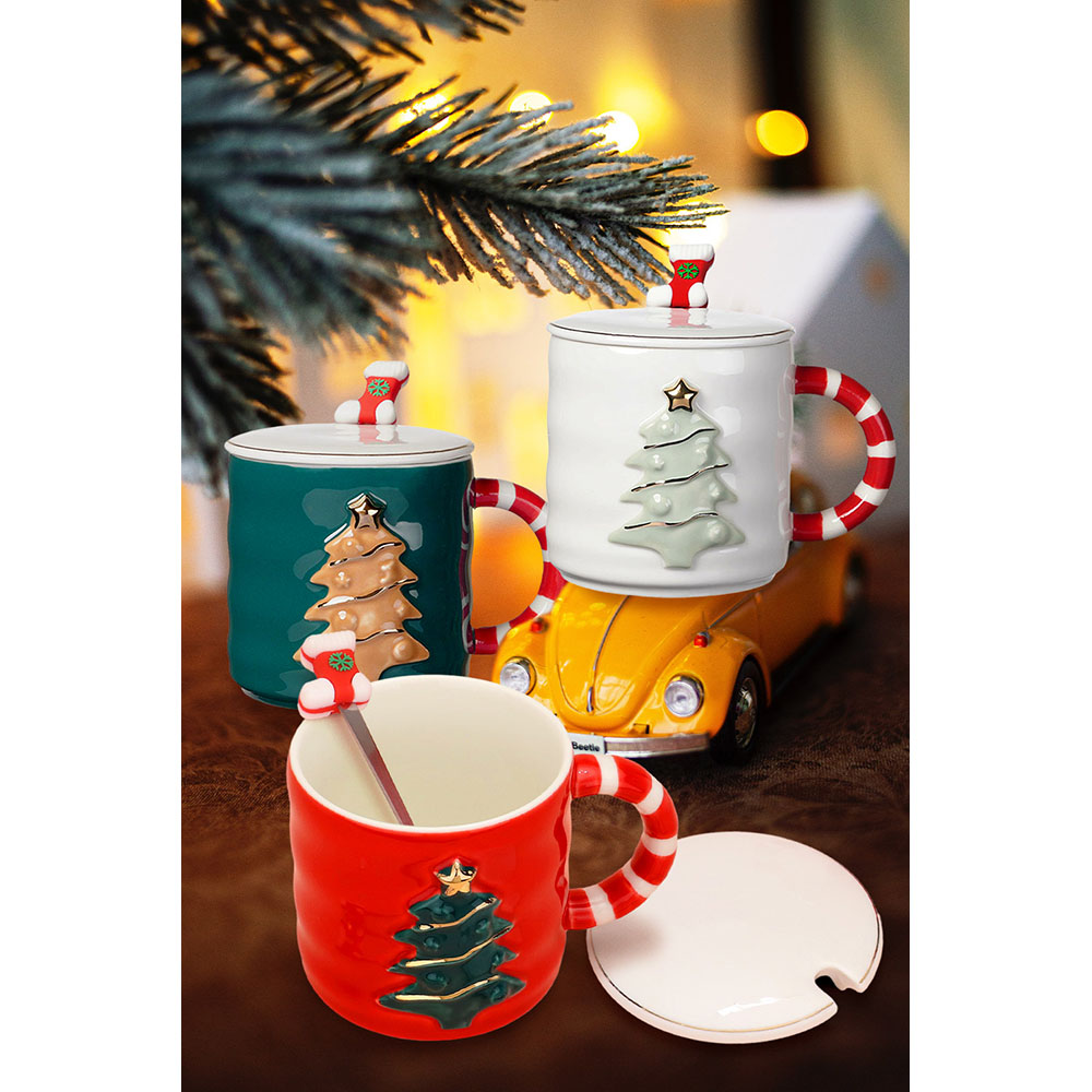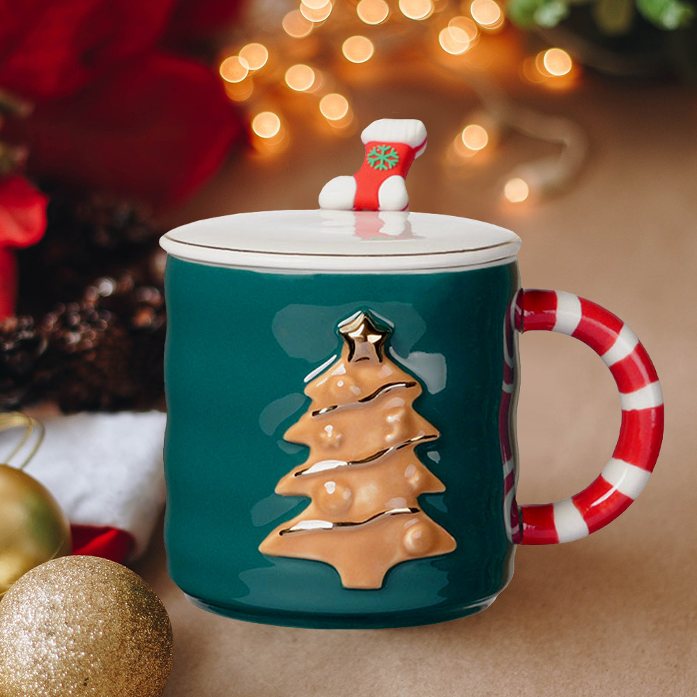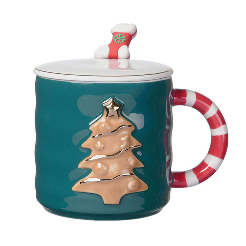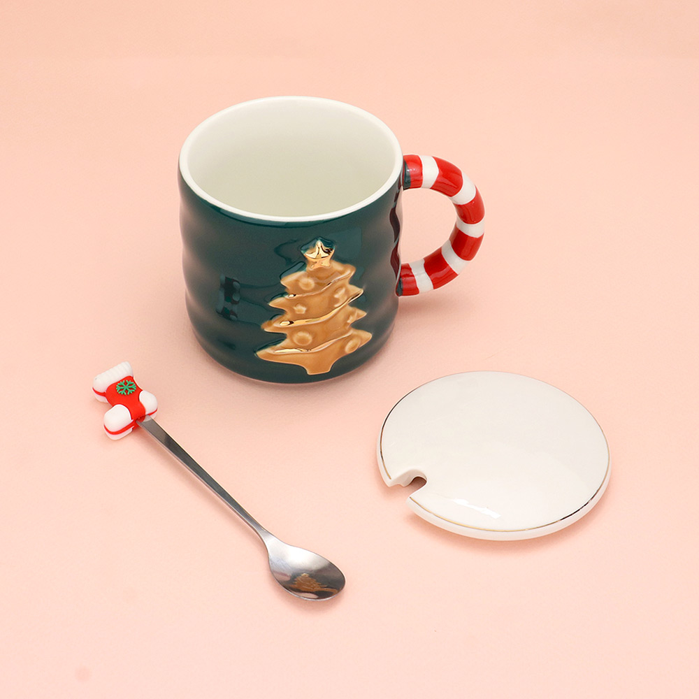 Christmas Tree Candy Cane Handle Ceramic Mug Cup