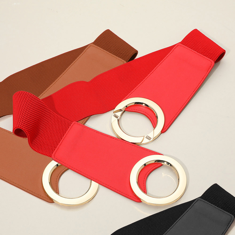 Double Metal Ring Buckle Accent Wide Elastic Waist Belt