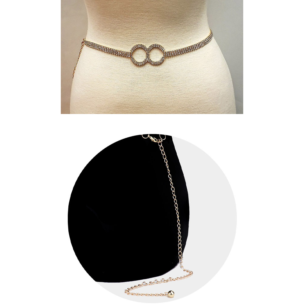 Double O Ring Pointed Rhinestone Paved Chain Belt