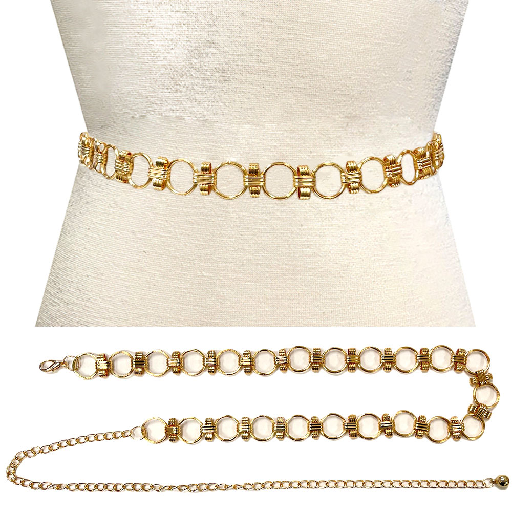 • Elevate your look with this geometric link waist belt featuring a bold pattern of interlocking shapes. Designed for a sleek, sophisticated finish, it adds a touch of modern luxury to any outfit, making it the perfect accessory for chic and confident styling.