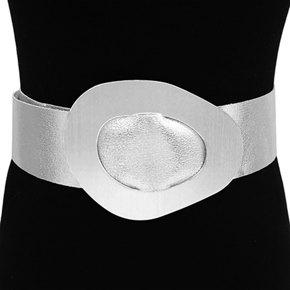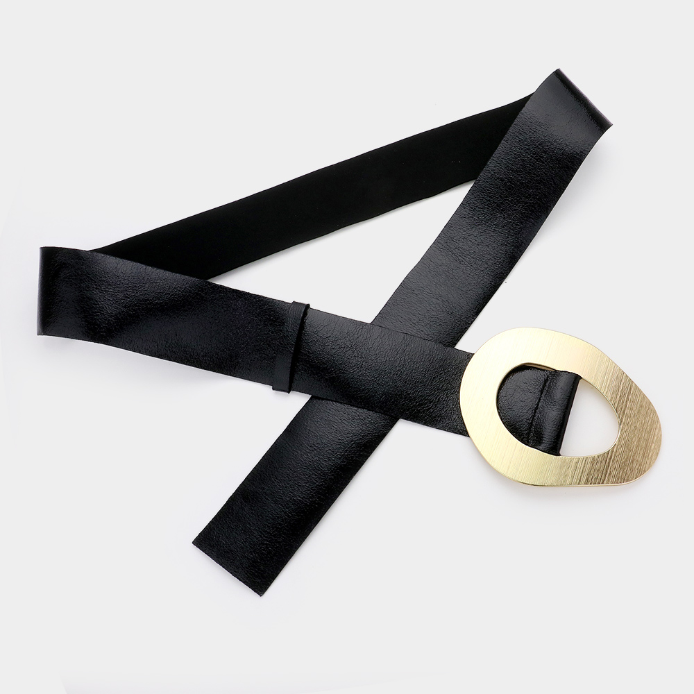 Geometric Brushed Metal Buckle Faux Leather Belt
