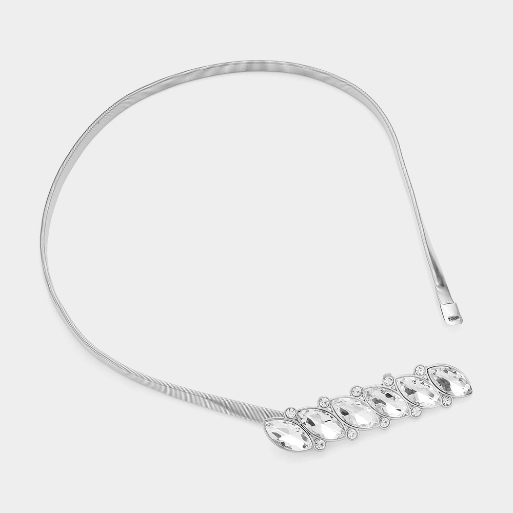 Marquise Stone Buckle Accented Stretch Metal Belt