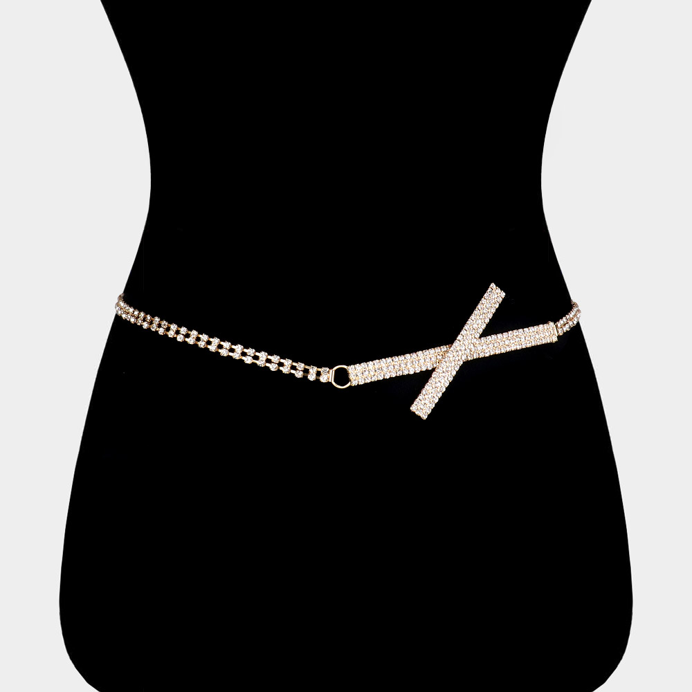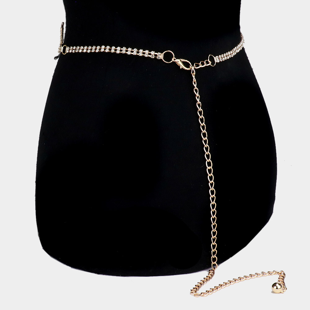 Stone Paved Flower Link Pointed Rhinestone Chain Waist Belt