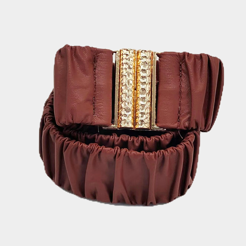 Solid Pleated Faux Leather Scrunch Stretch Elastic Belt