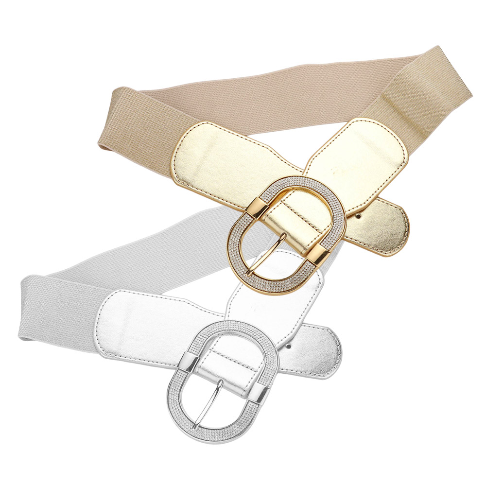 Stone Paved Open Oval Buckle Accented Elastic Belt