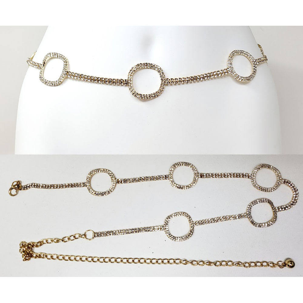Stone Paved Wavy Circle Link Pointed Rhinestone Chain Waist Belt