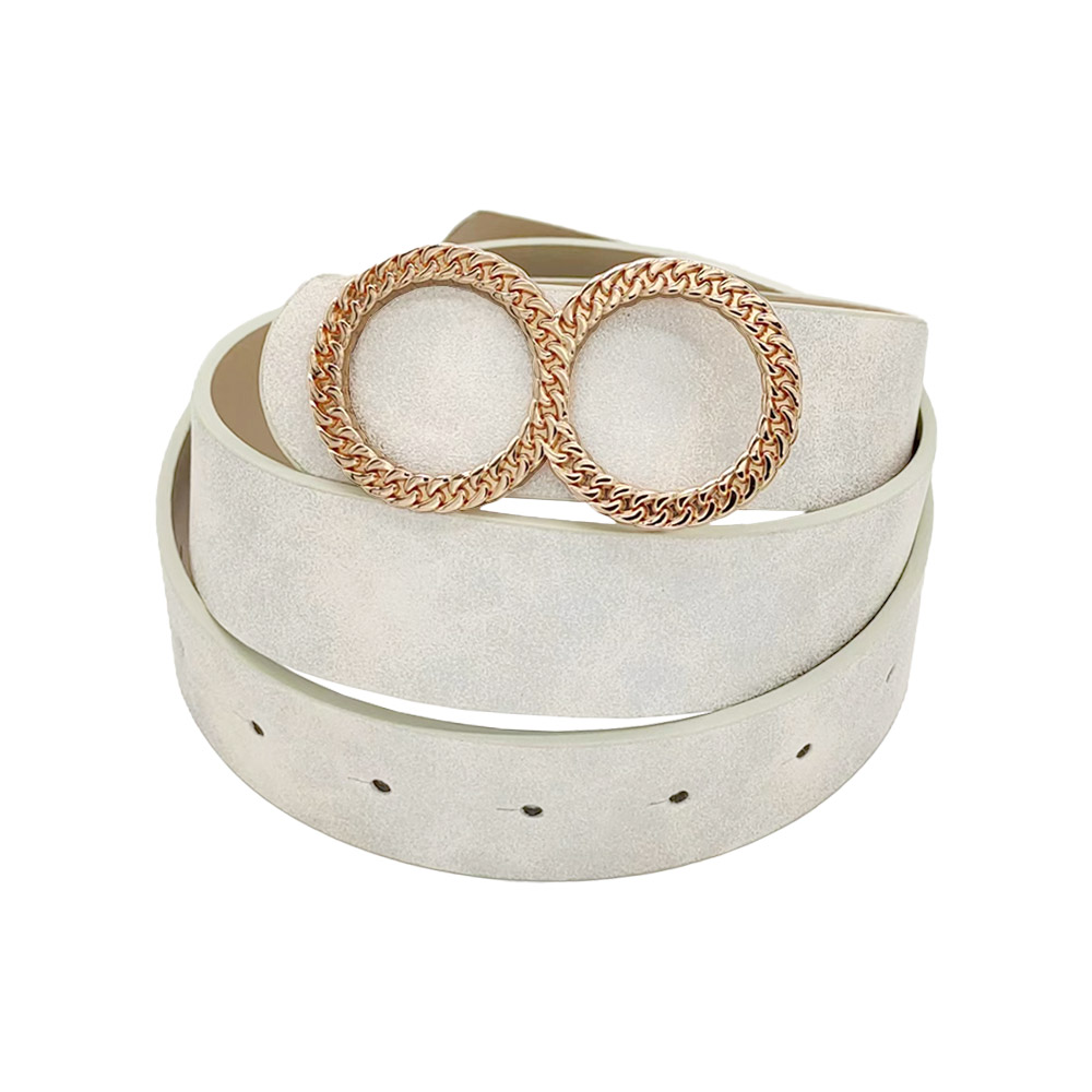 Textured Metal Double O Buckle Accented Faux Leather Belt