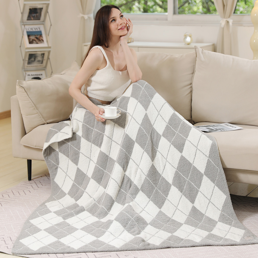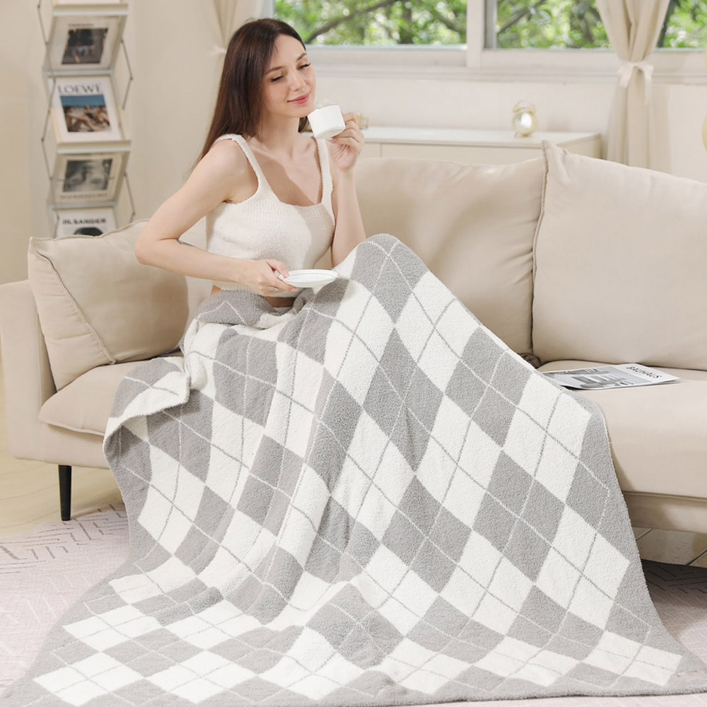 • Add a touch of modern comfort with this soft diamond check throw blanket. Its elegant design makes it a stylish layer for sofas or beds, offering cozy warmth and a refined look for everyday relaxation.