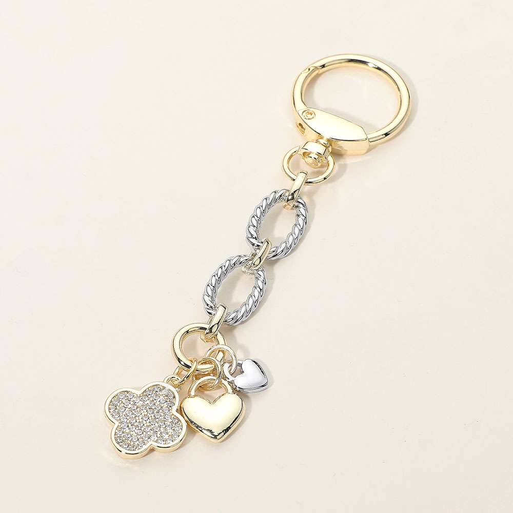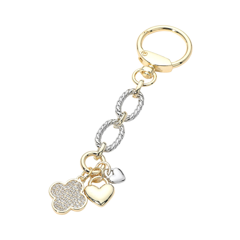 • This multi charm keychain features heart and quatrefoil motifs accented with crystal-style details and linked chain elements for a playful yet polished look. Designed to add charm and shine to keys or bags, it’s ideal for boutiques seeking giftable accessories that blend personality, sparkle, and everyday functionality.