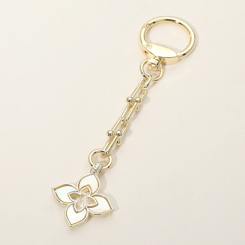 Details • Size : 5.5" L, 1.25" X 3.75" • This floral charm keychain features a layered flower-inspired accent suspended from a sleek linked chain for a refined, feminine statement. Designed for easy attachment to keys or bags, it’s ideal for boutiques seeking giftable accessories that add charm, elegance, and everyday versatility to modern styling. • Gold Dipped