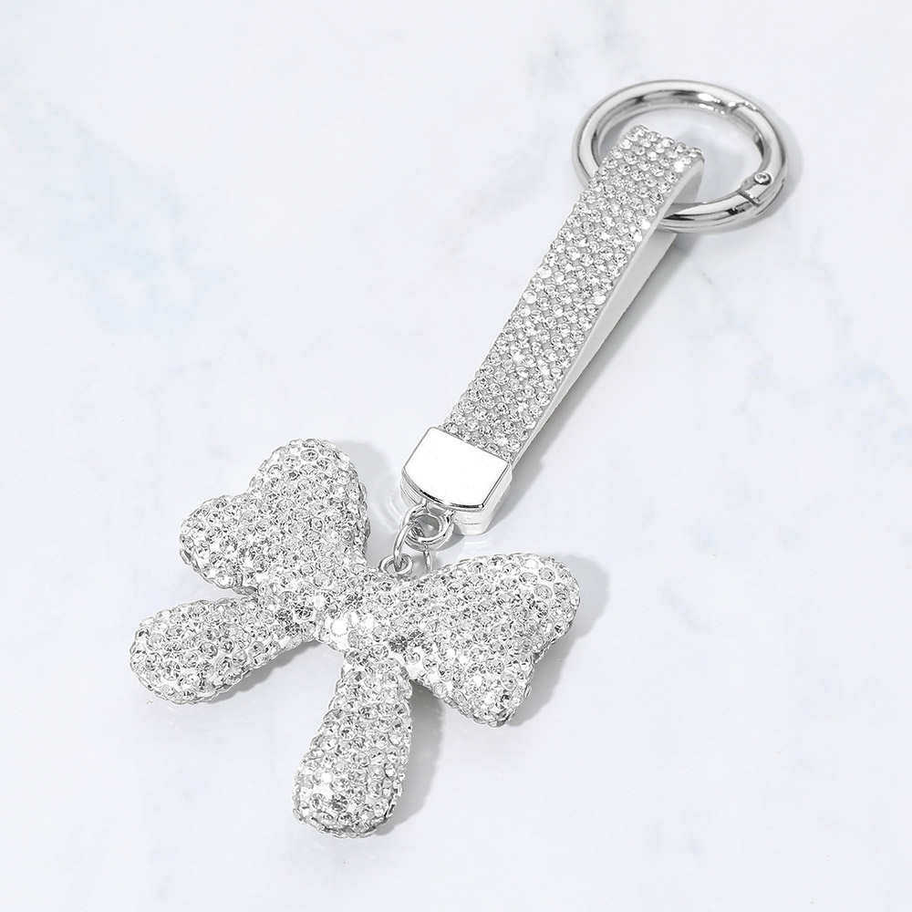 Details • Size : 2" X 2", 5" L • Add charm to your everyday essentials with this sparkling bow keychain featuring a glitter strap. Perfect for handbags, backpacks, or keys, it combines a playful design with practical use. A stylish accessory and thoughtful gift to brighten up any collection. • Lead and Nickel Compliant